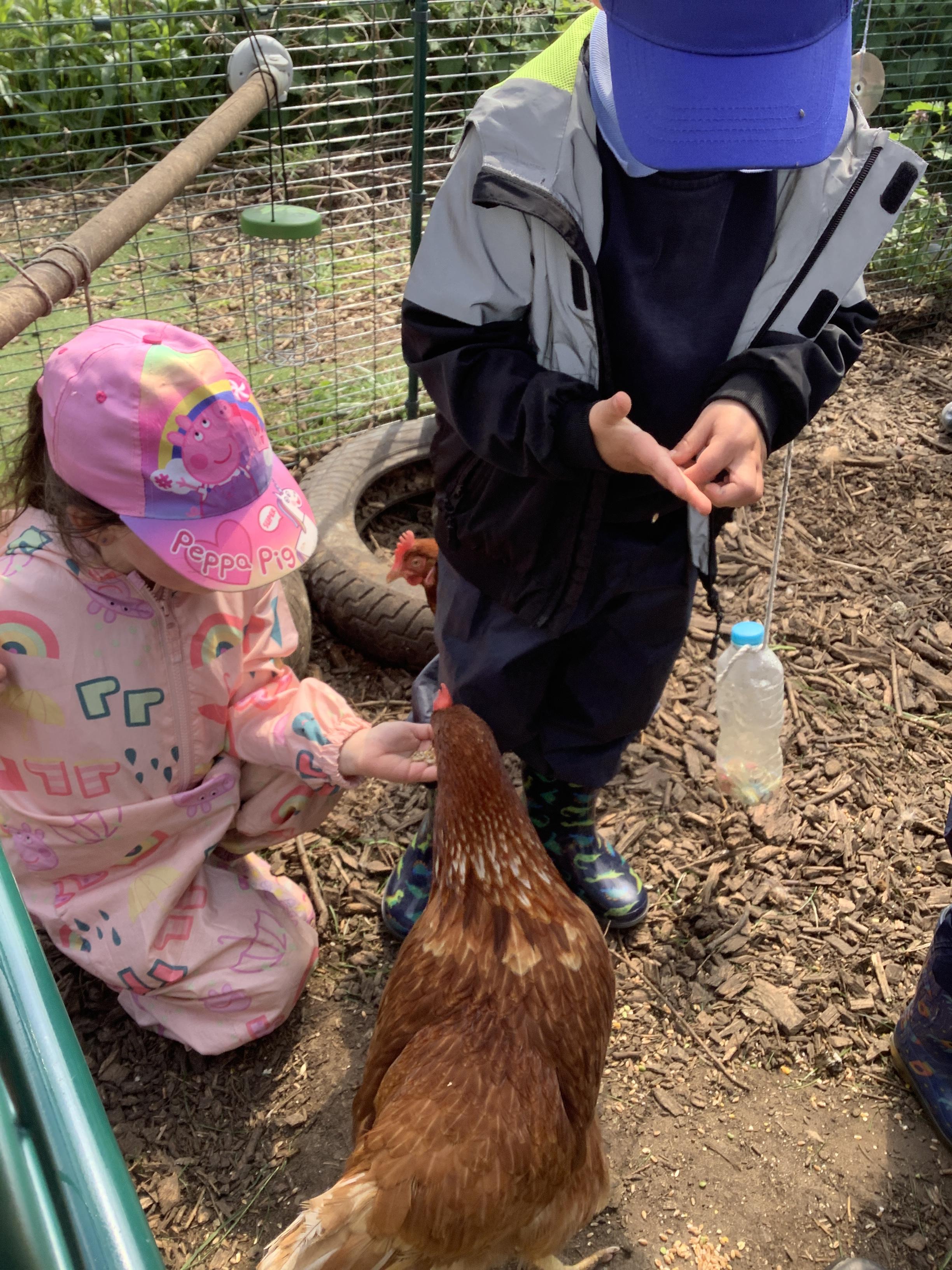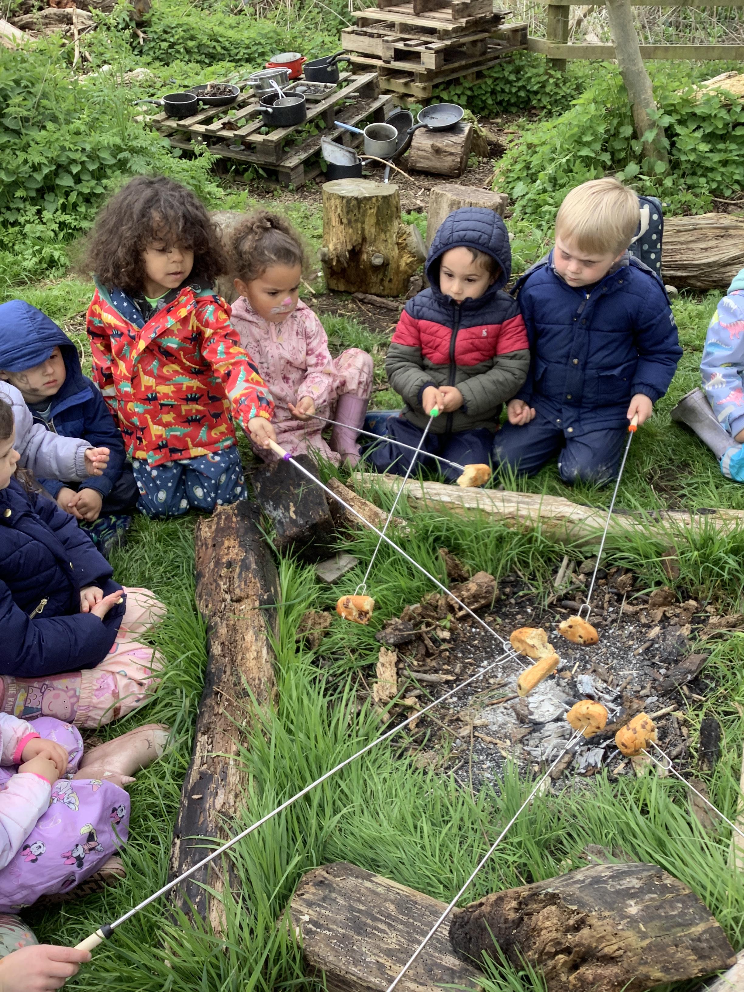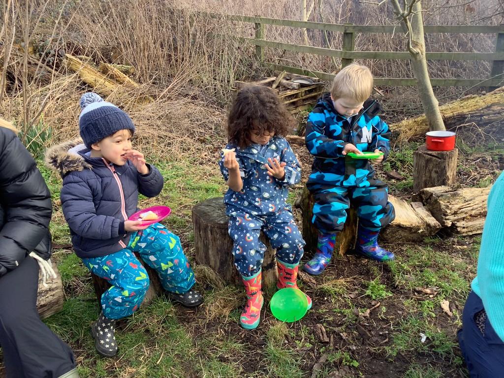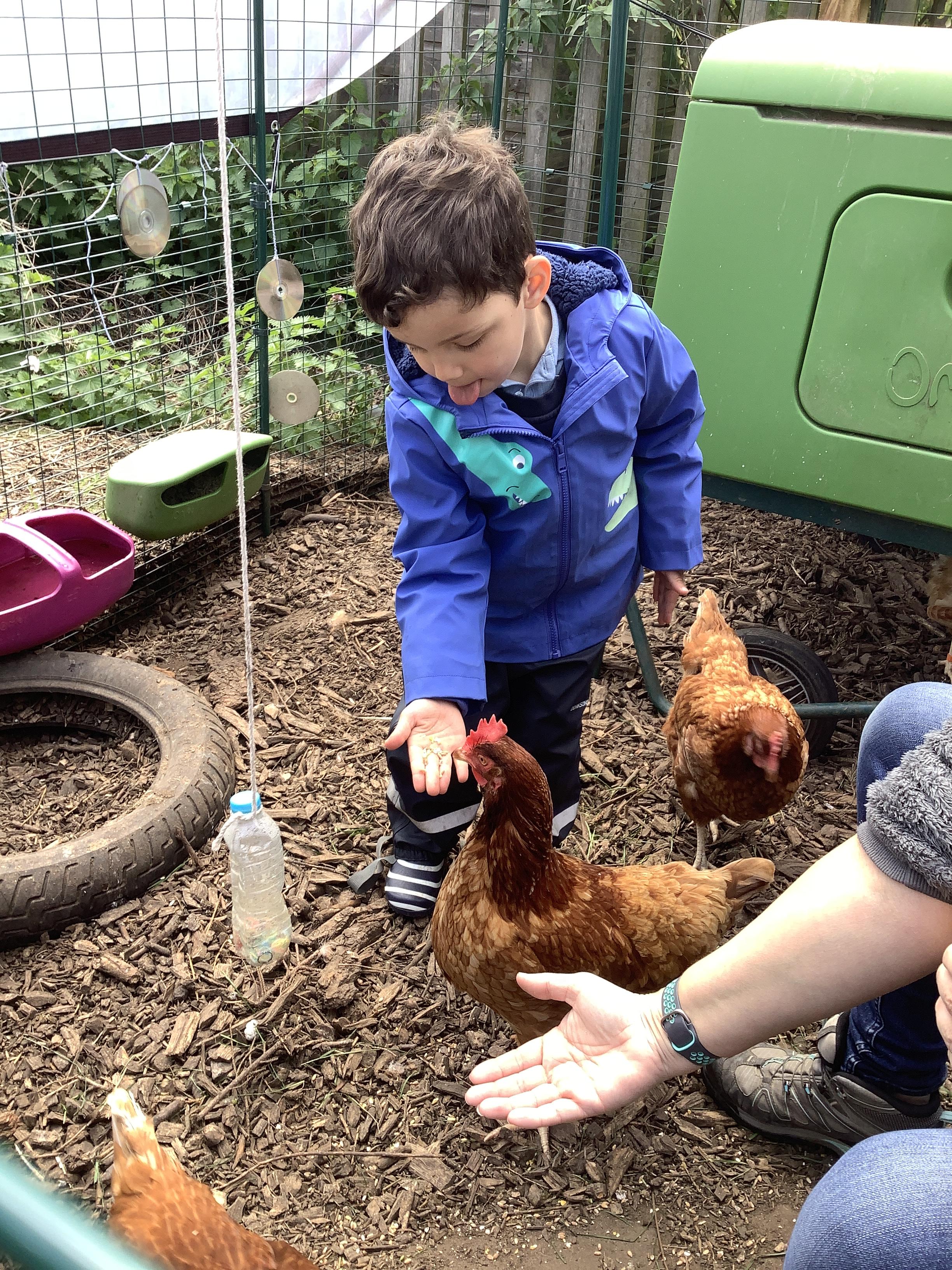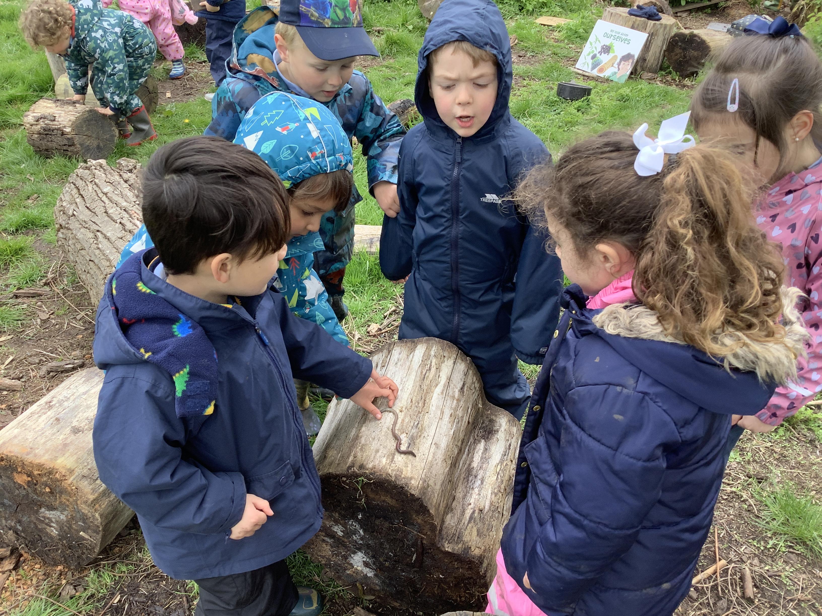 During Forest school we have really been enjoying the warmer and drier weather. The fruit trees have started to blossom and the children have been keeping watch on these each week, as well as making their own fire (like Zog!) to toast their own chocolate brioche. We have been able to meet and stroke the chickens as well as hand feed them and have been busy turning over logs and looking for insects. We have found worms, snails, slugs and a slow worm!