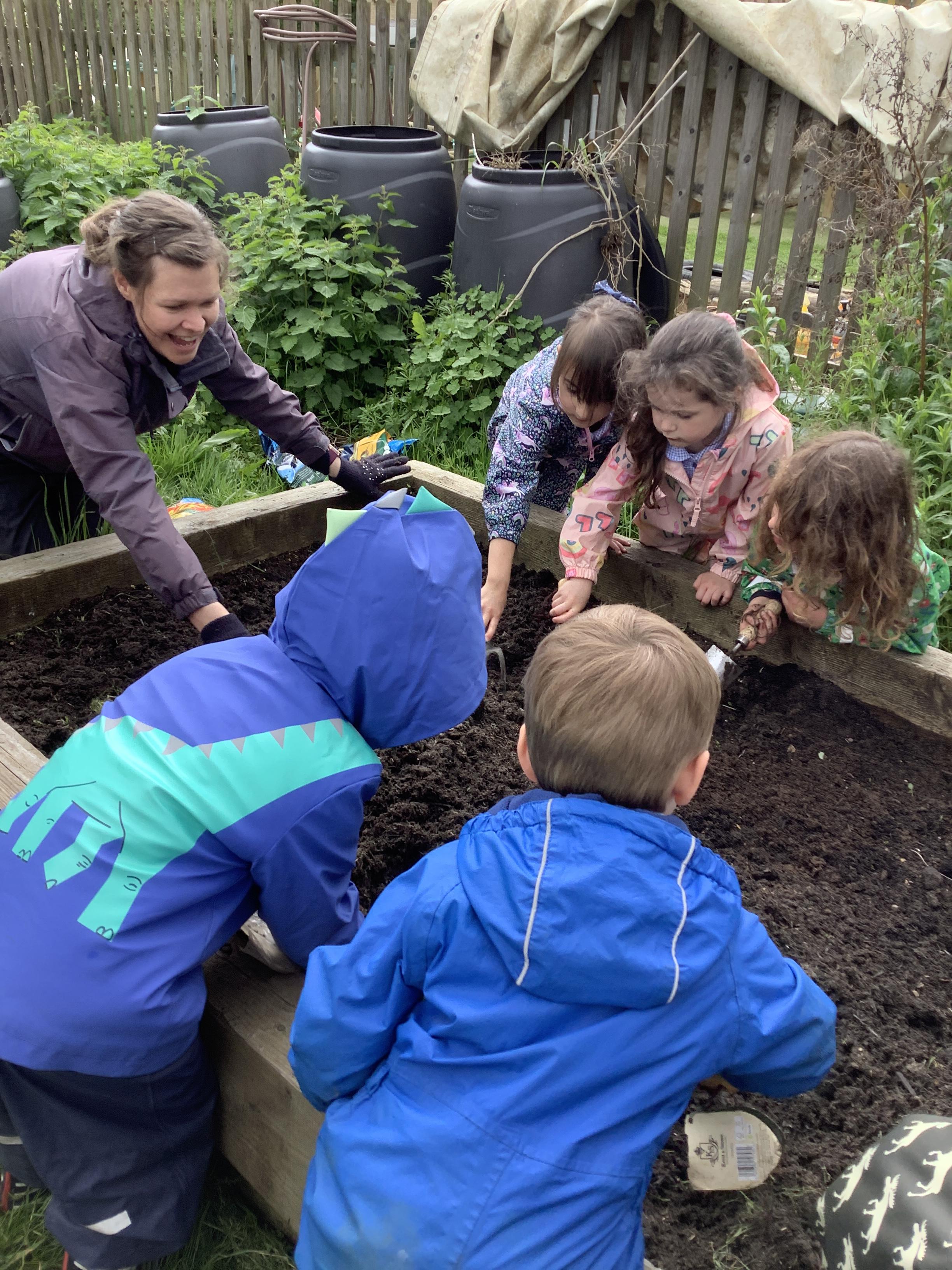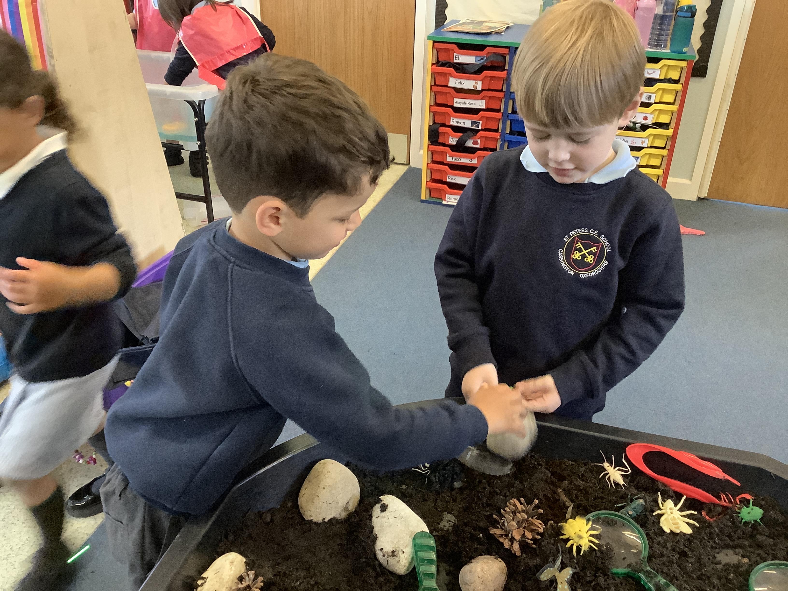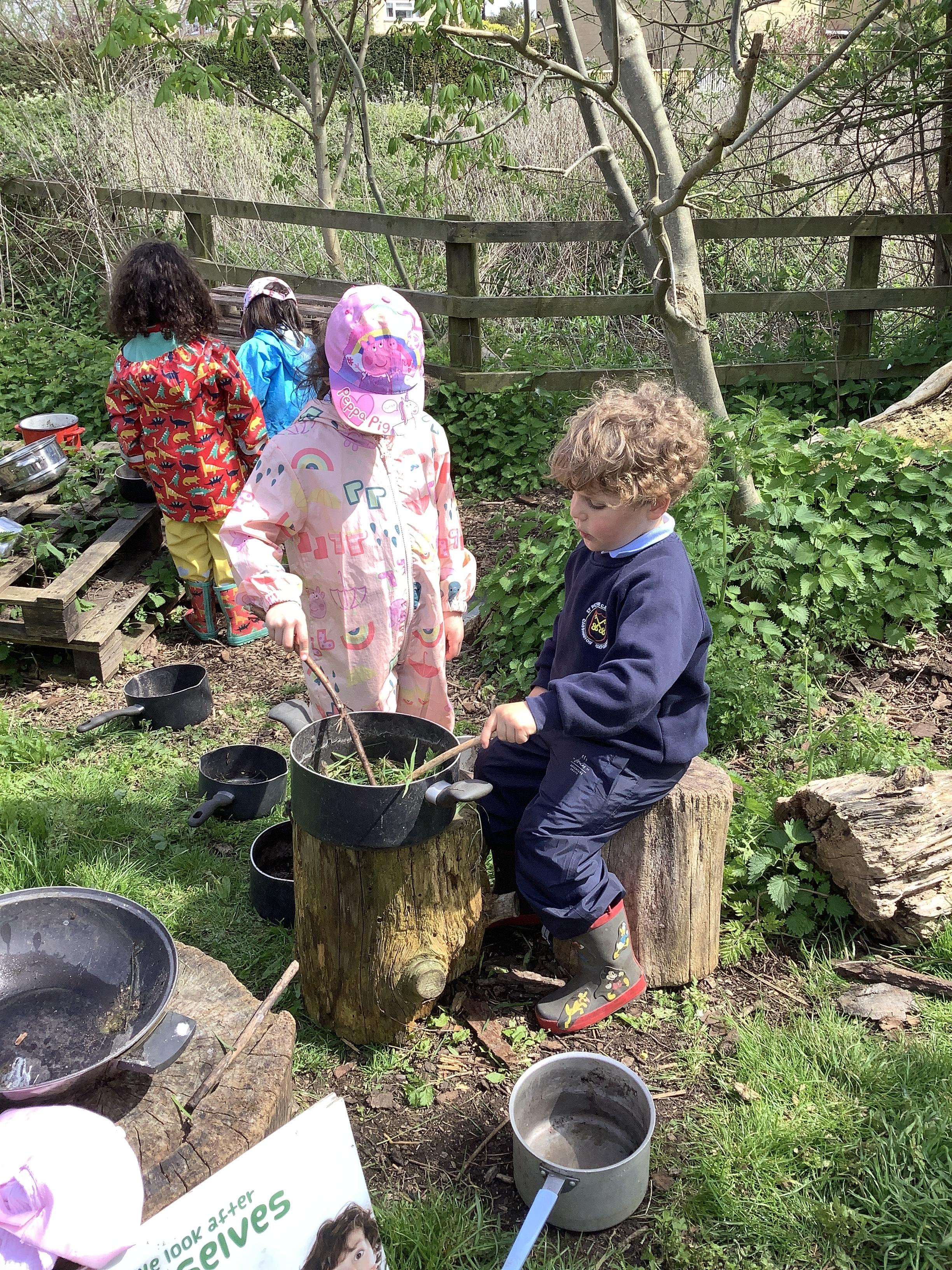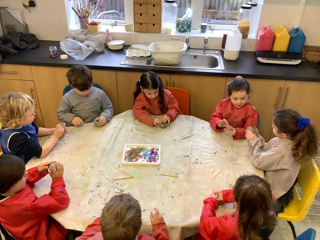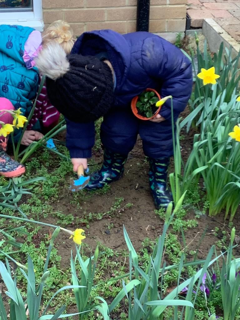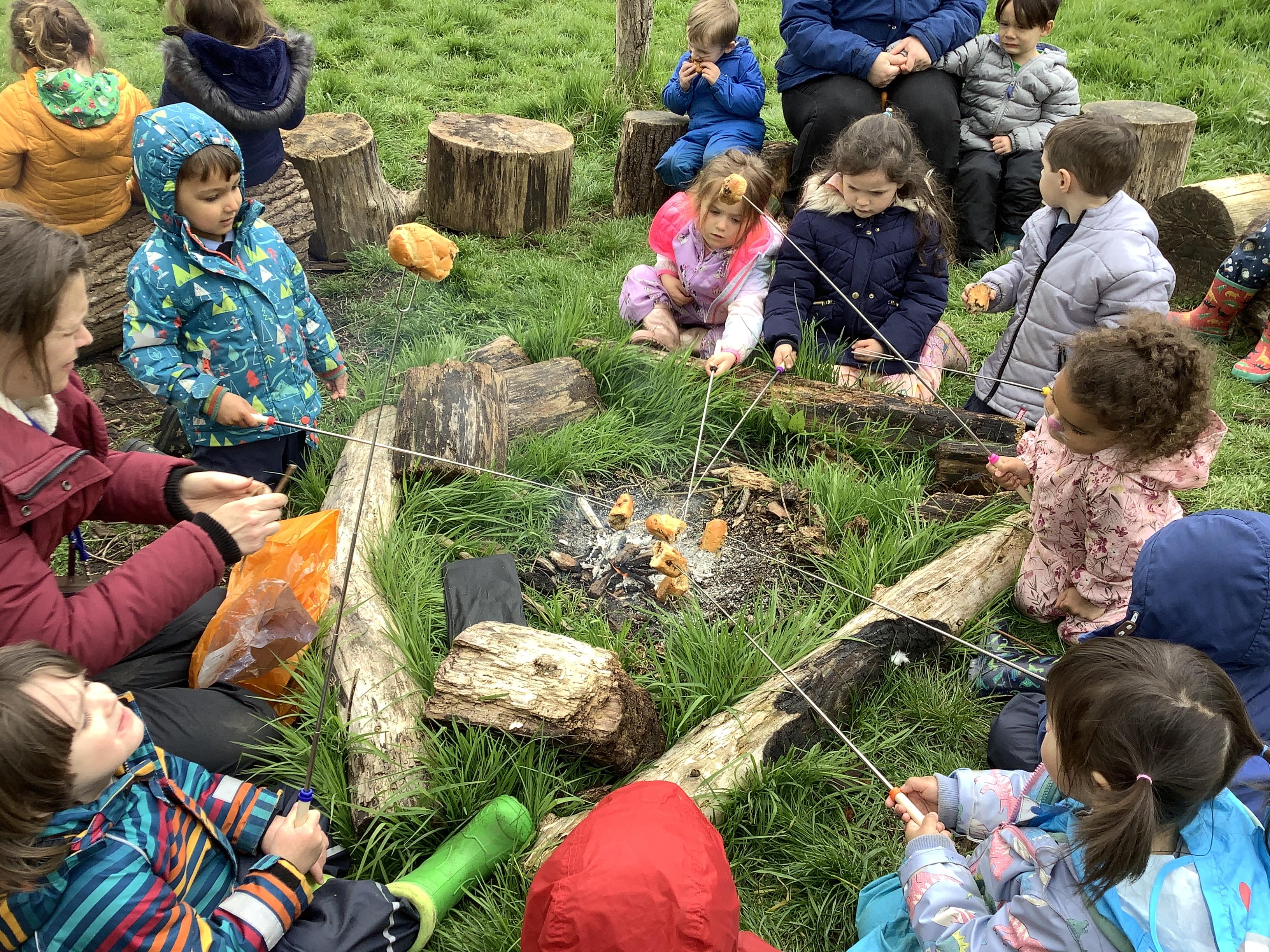 During Forest school we have really been enjoying the warmer and drier weather. The fruit trees have started to blossom and the children have been keeping watch on these each week, as well as making their own fire (like Zog!) to toast their own chocolate brioche. We have been able to meet and stroke the chickens as well as hand feed them and have been busy turning over logs and looking for insects. We have found worms, snails, slugs and a slow worm!