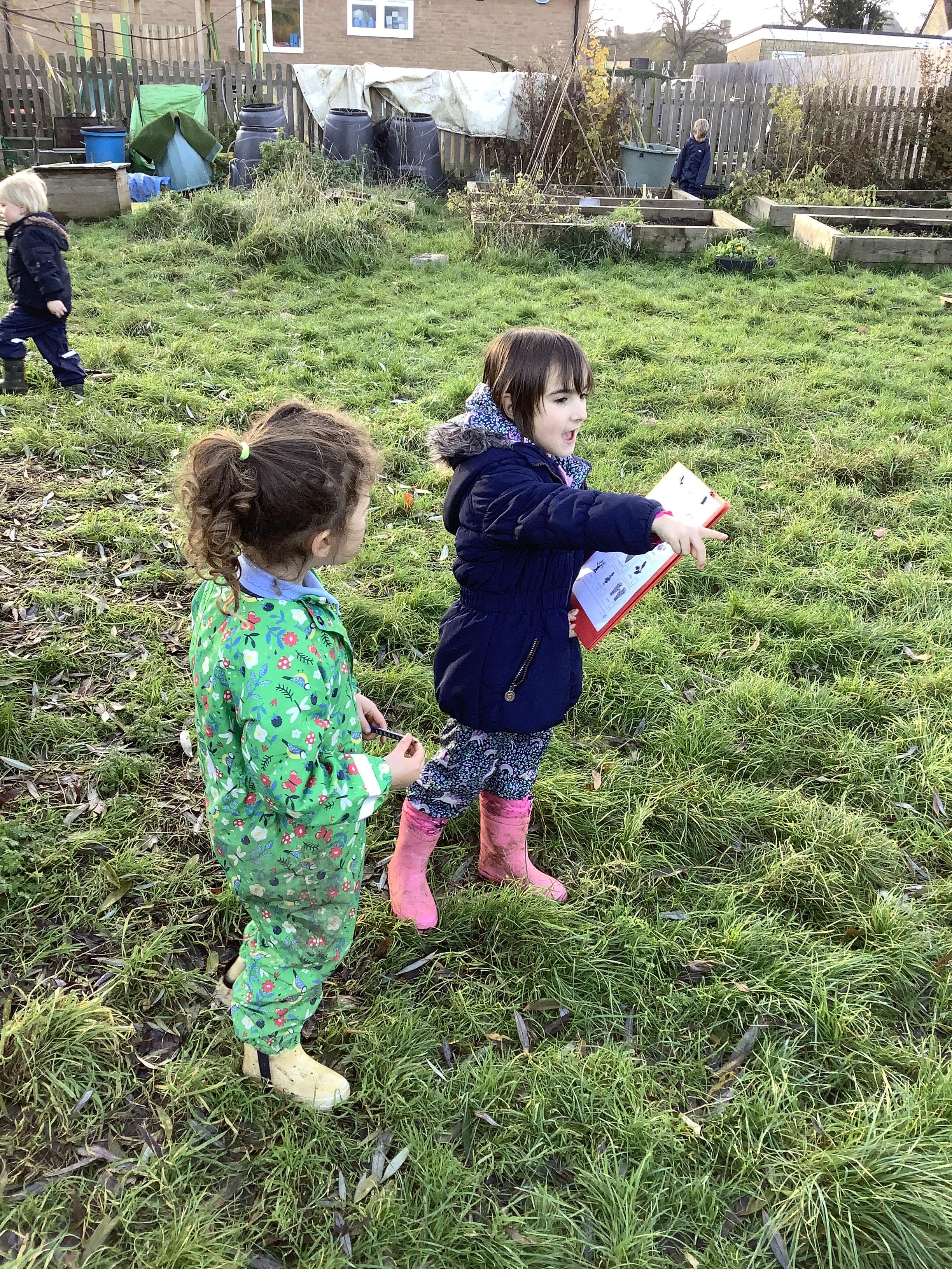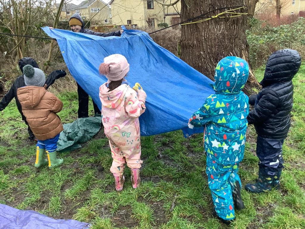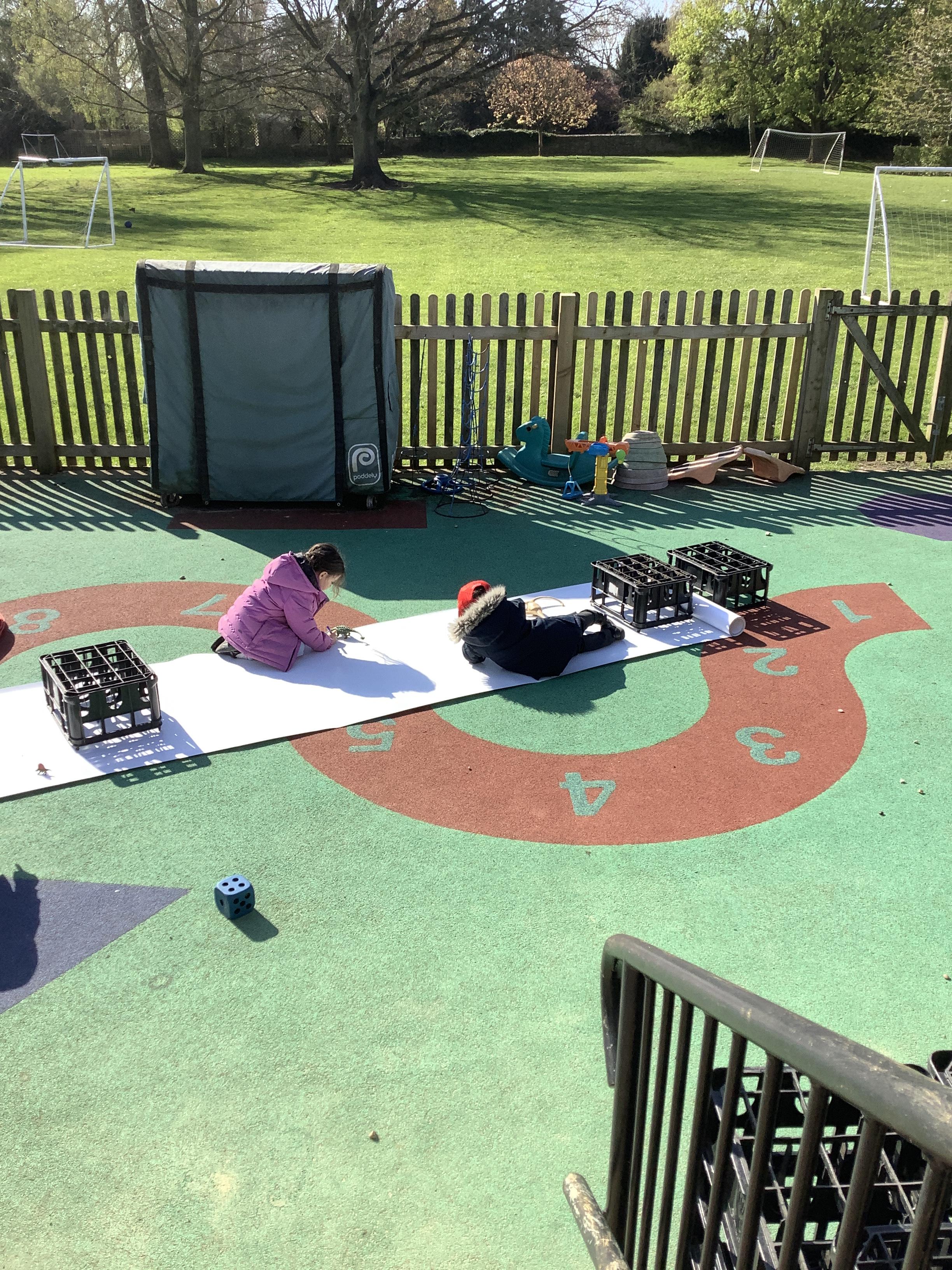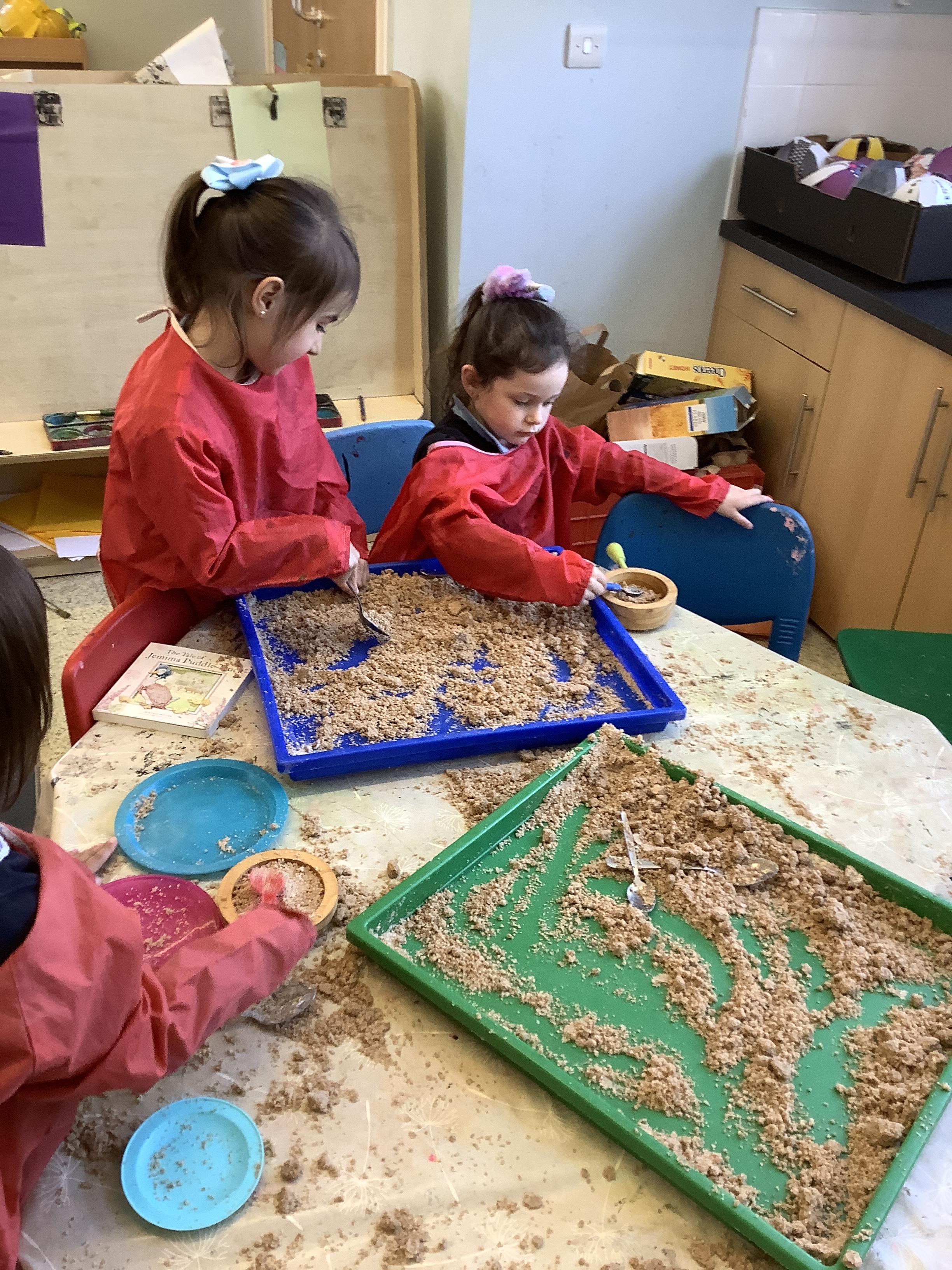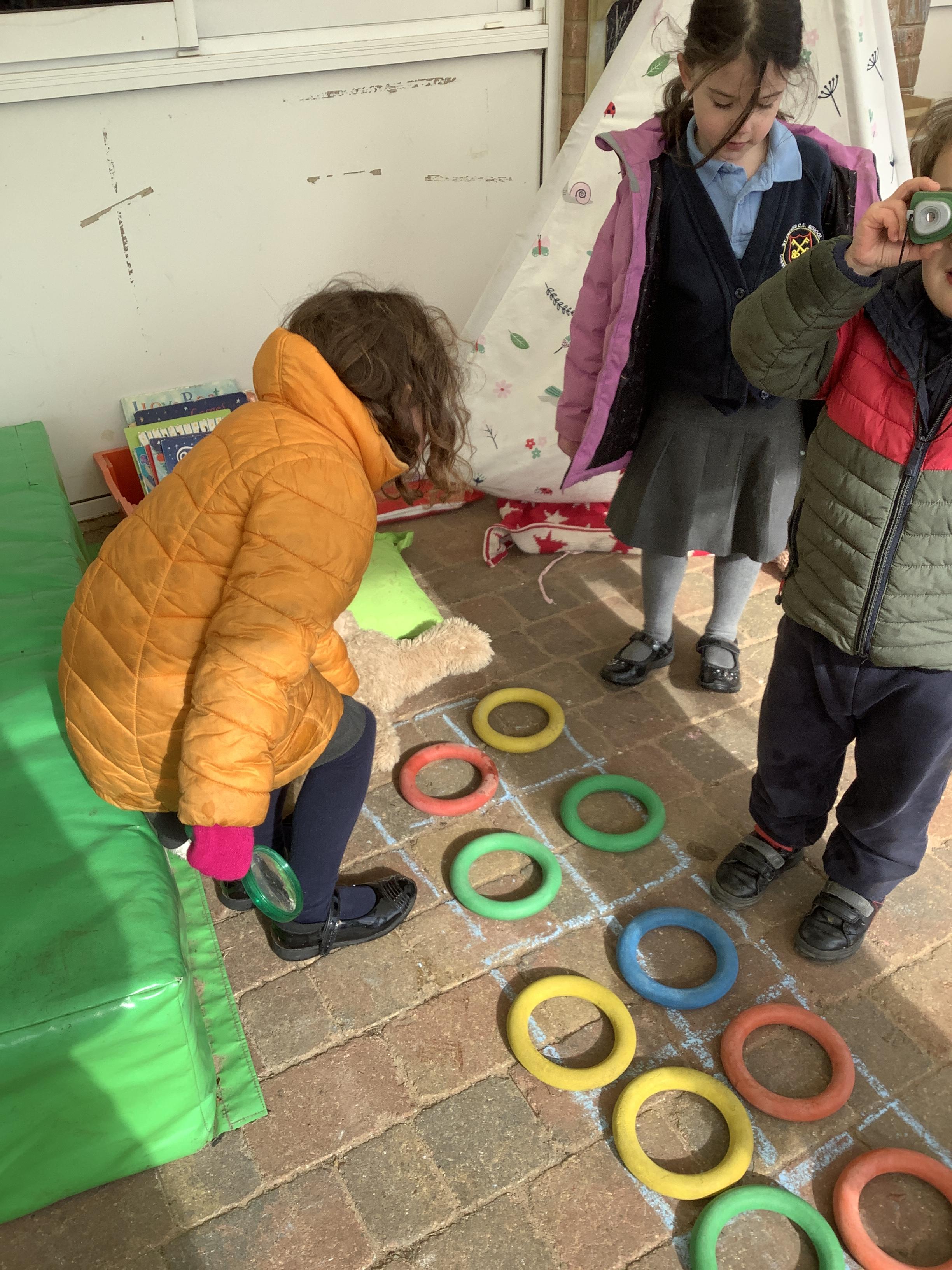 They continued by following and re-telling the story of ‘we’re going on a bear hunt.’ This gave them the opportunity to create a story map and follow a map to get to a place in the garden. It also offered lots of sensory play and experiences as they recreated the scenes of the story, like the thick oozy mud and swirling whirling snowstorm. Listening to Michael Rosen tell the story was lovely as he added lots of expression and effects.