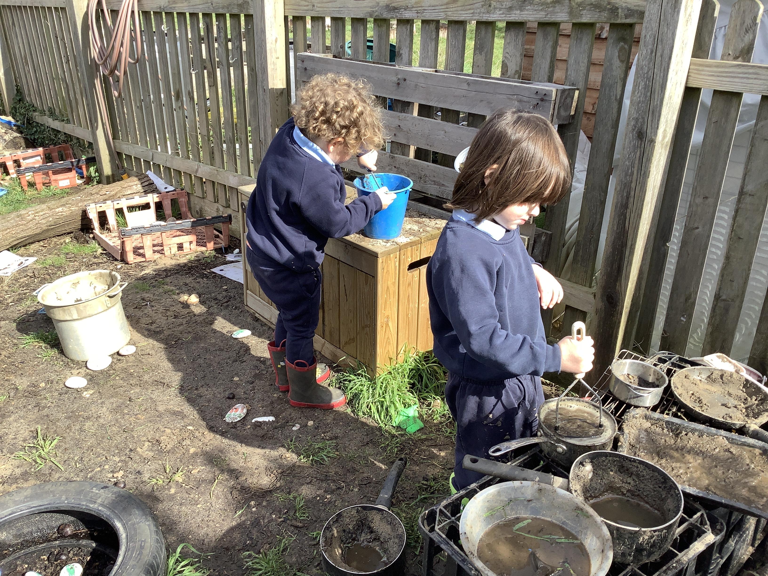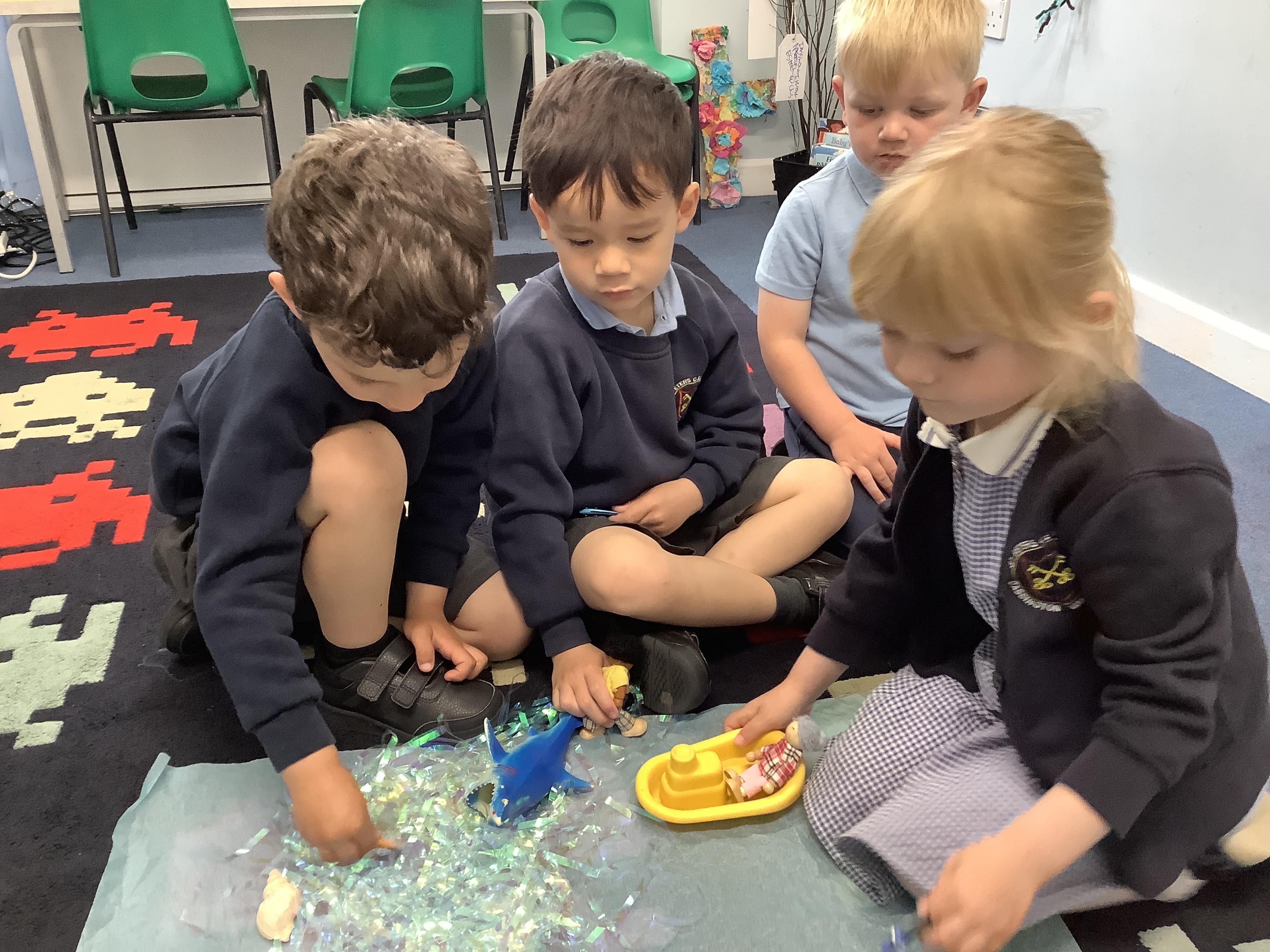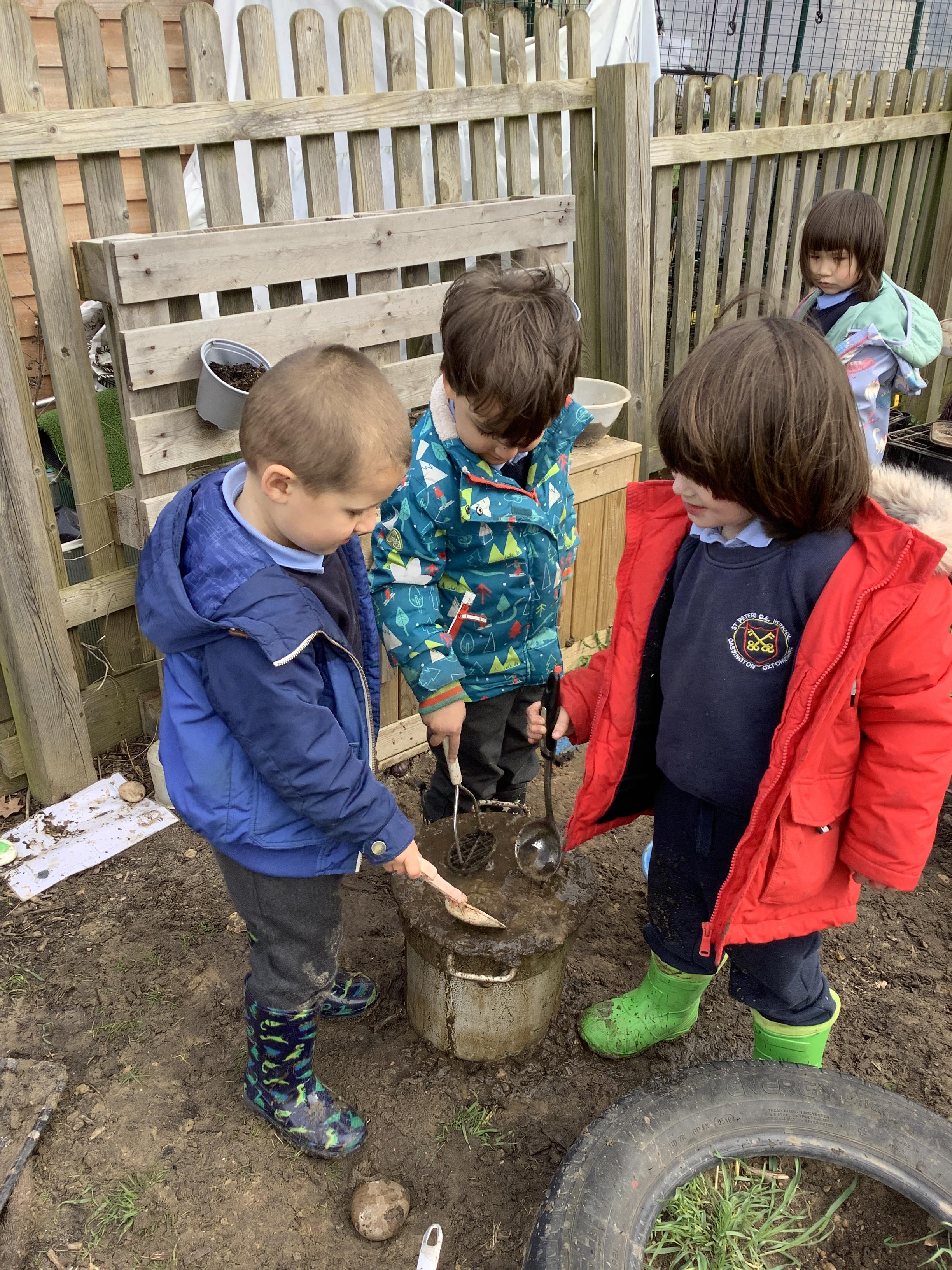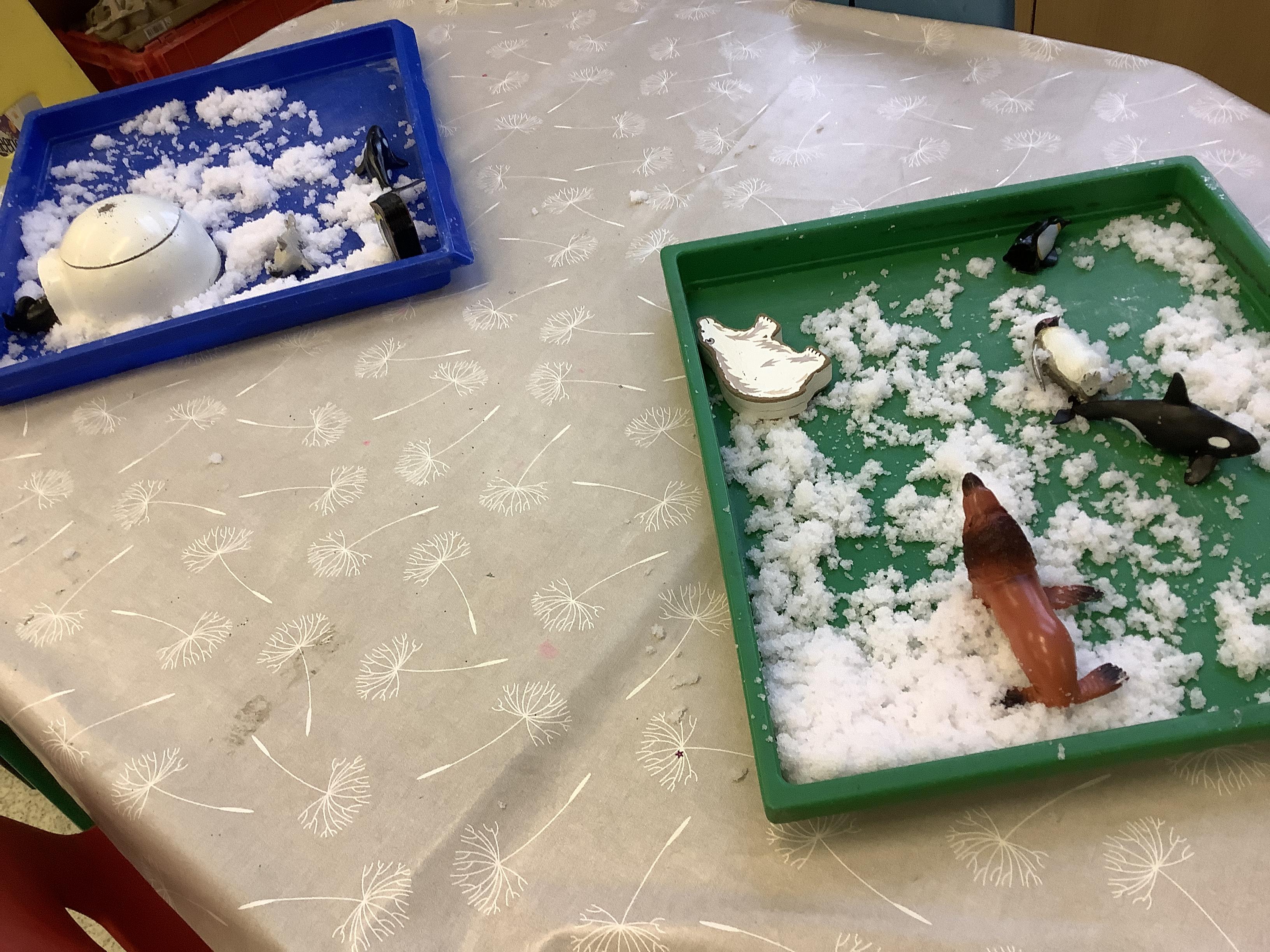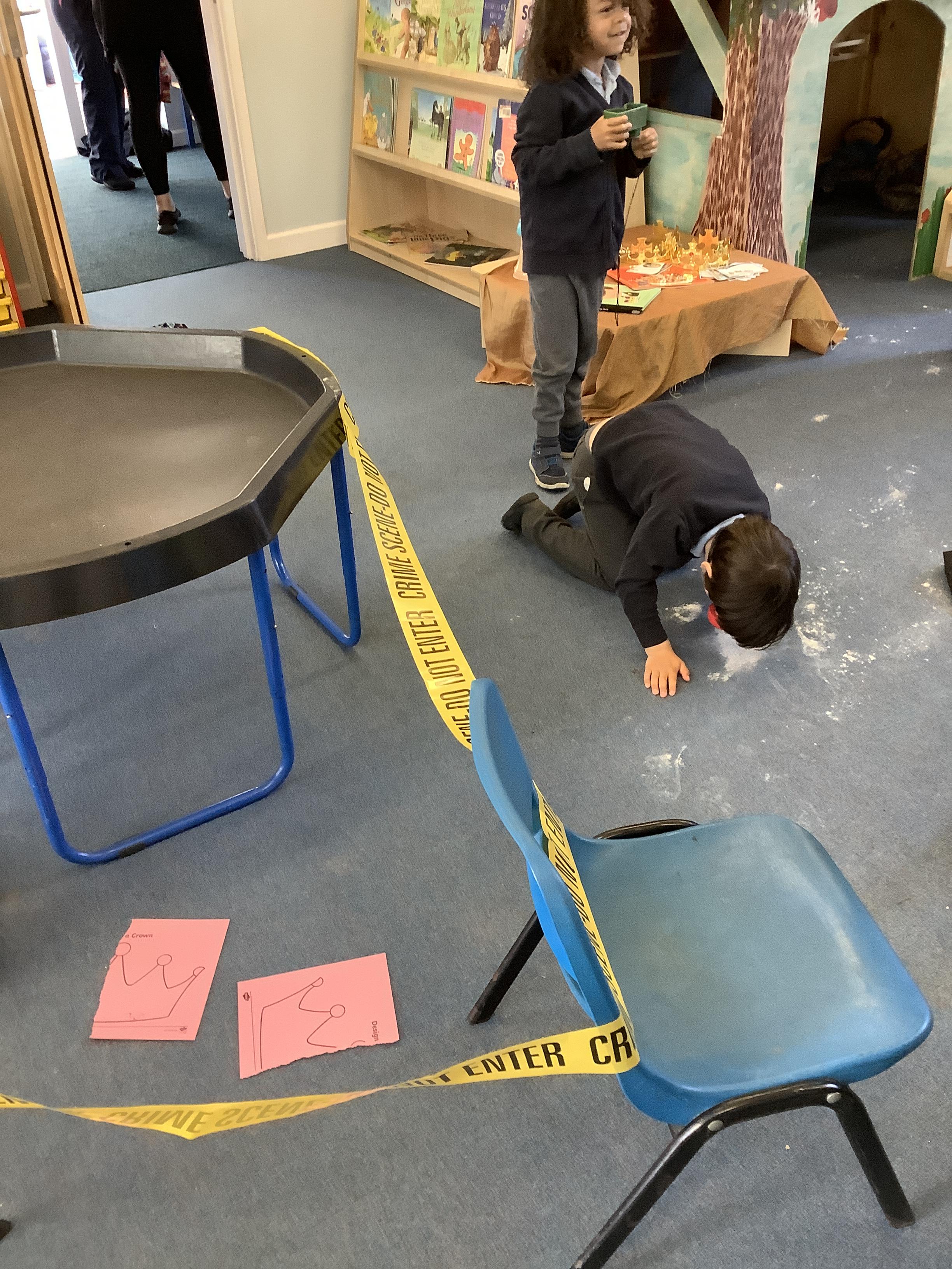 They continued by following and re-telling the story of ‘we’re going on a bear hunt.’ This gave them the opportunity to create a story map and follow a map to get to a place in the garden. It also offered lots of sensory play and experiences as they recreated the scenes of the story, like the thick oozy mud and swirling whirling snowstorm. Listening to Michael Rosen tell the story was lovely as he added lots of expression and effects.