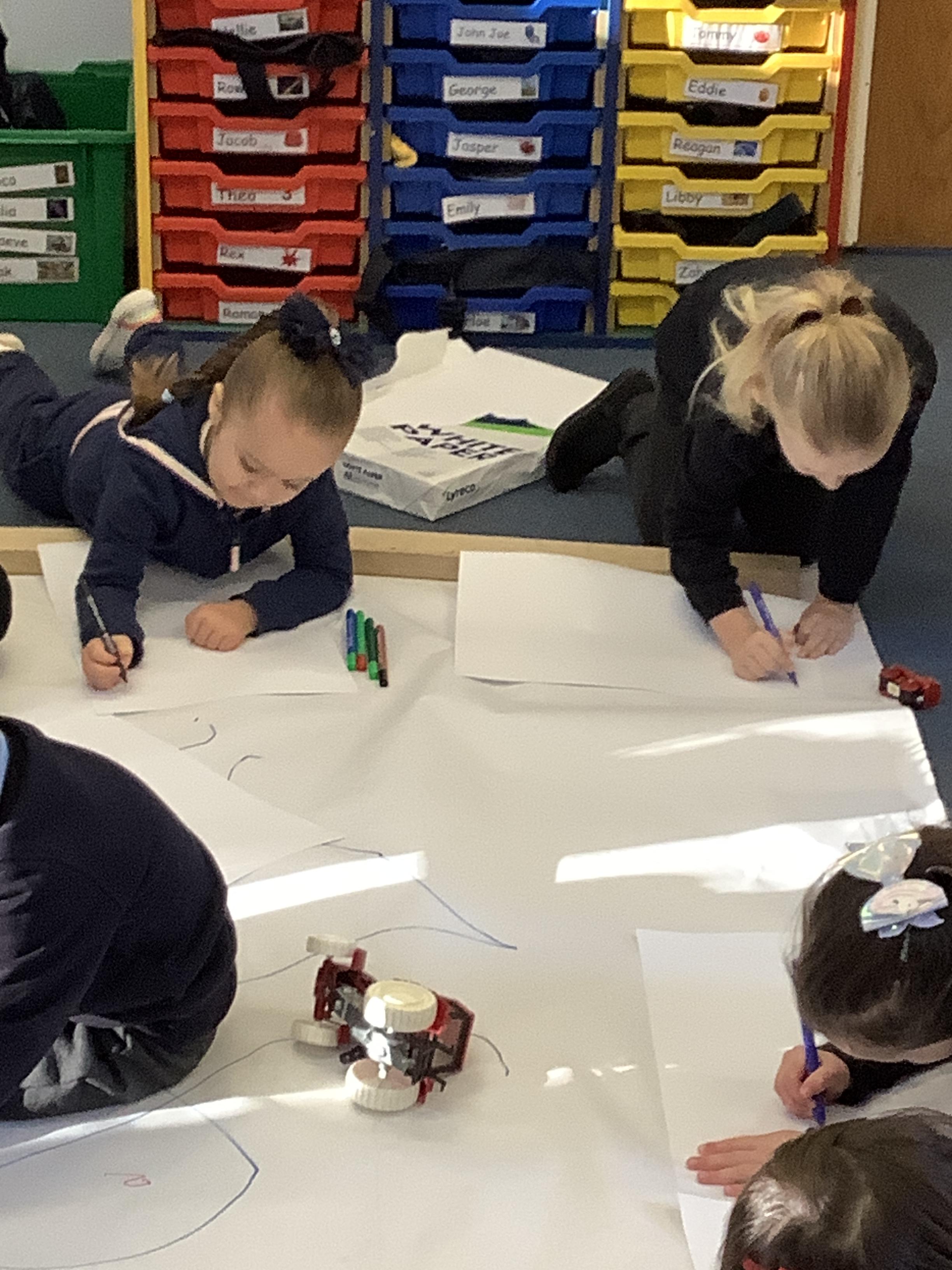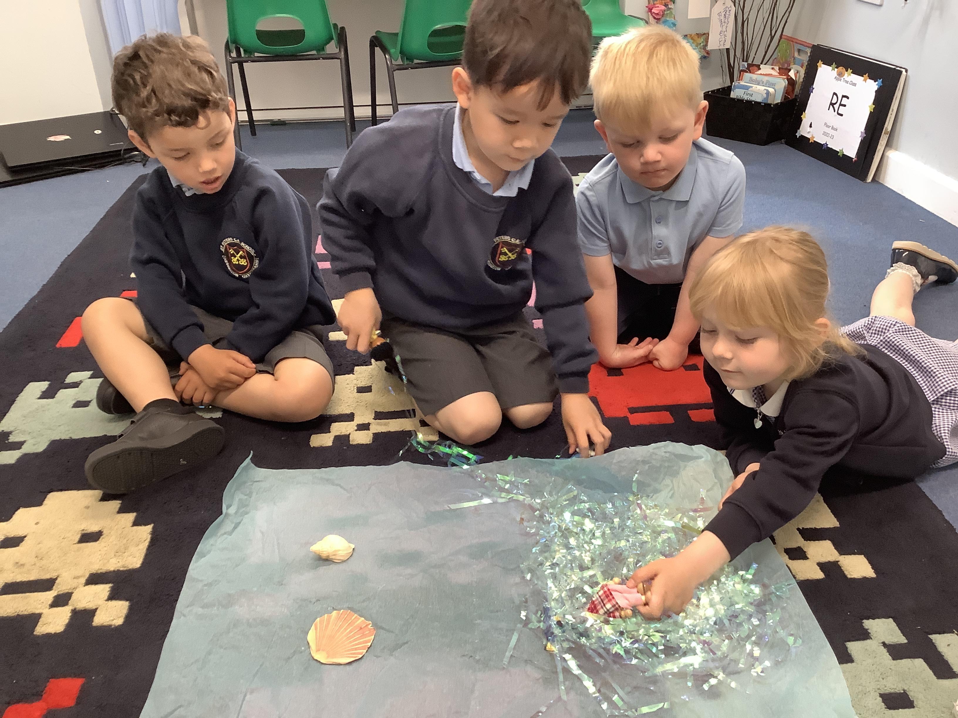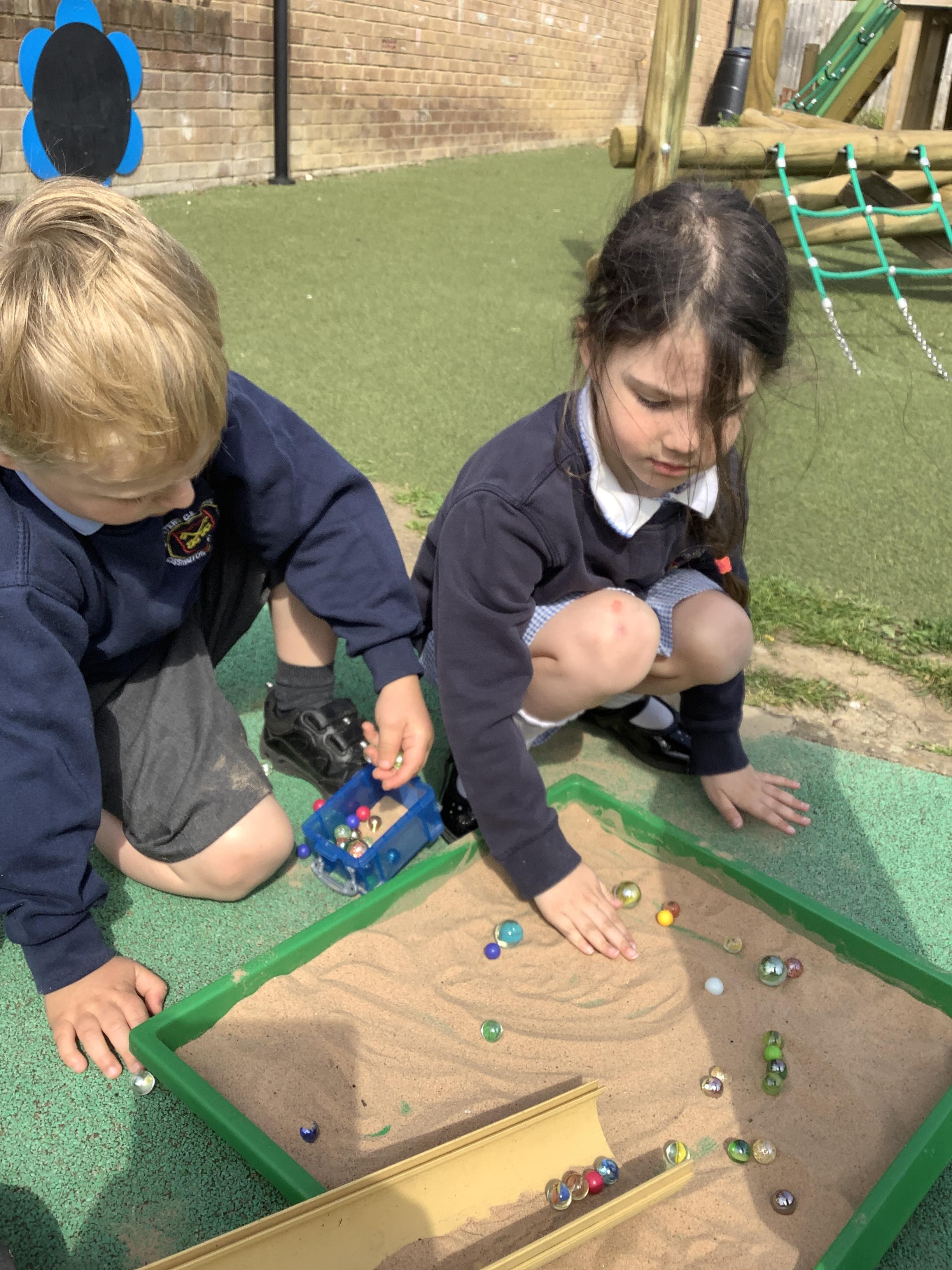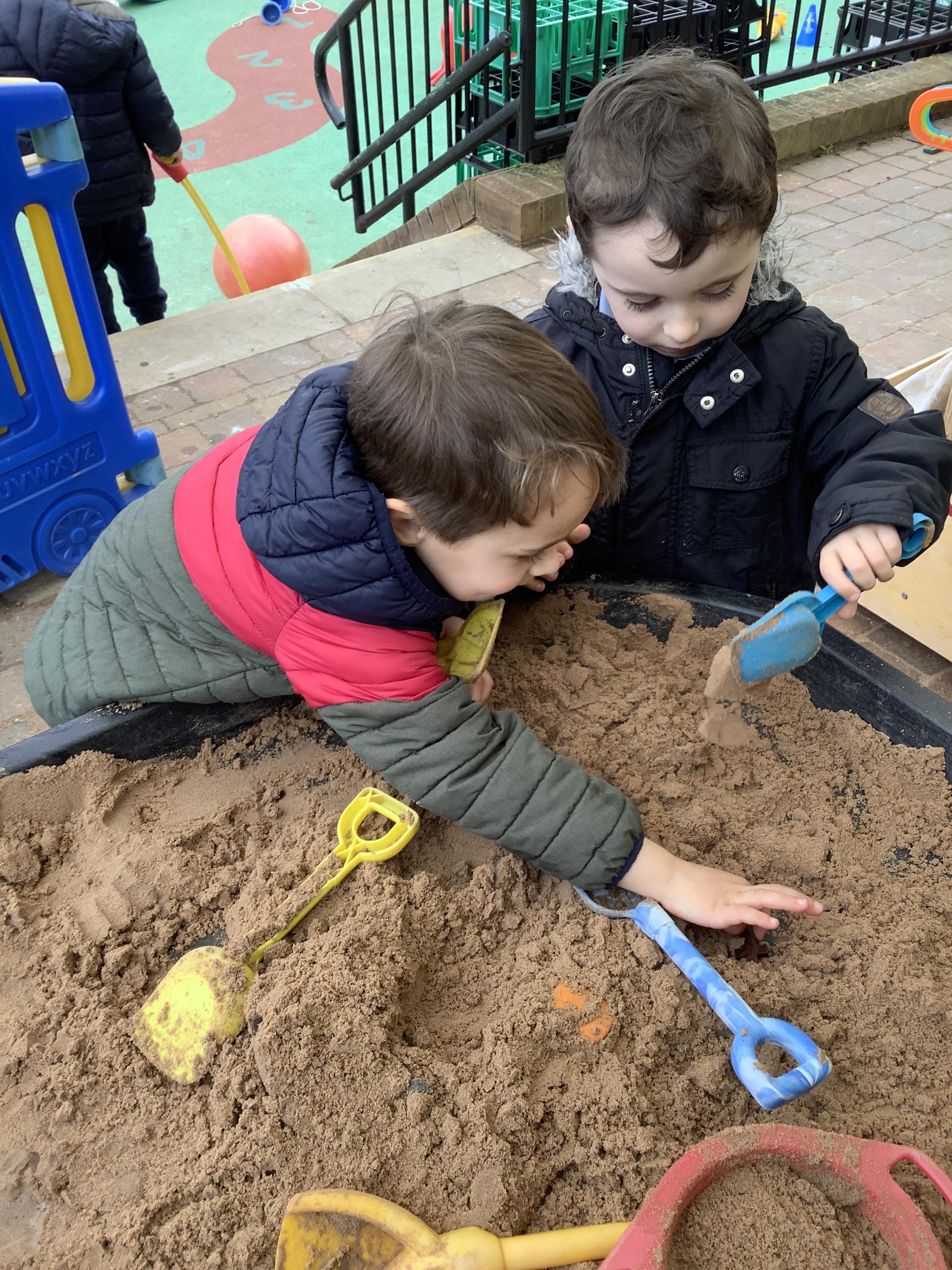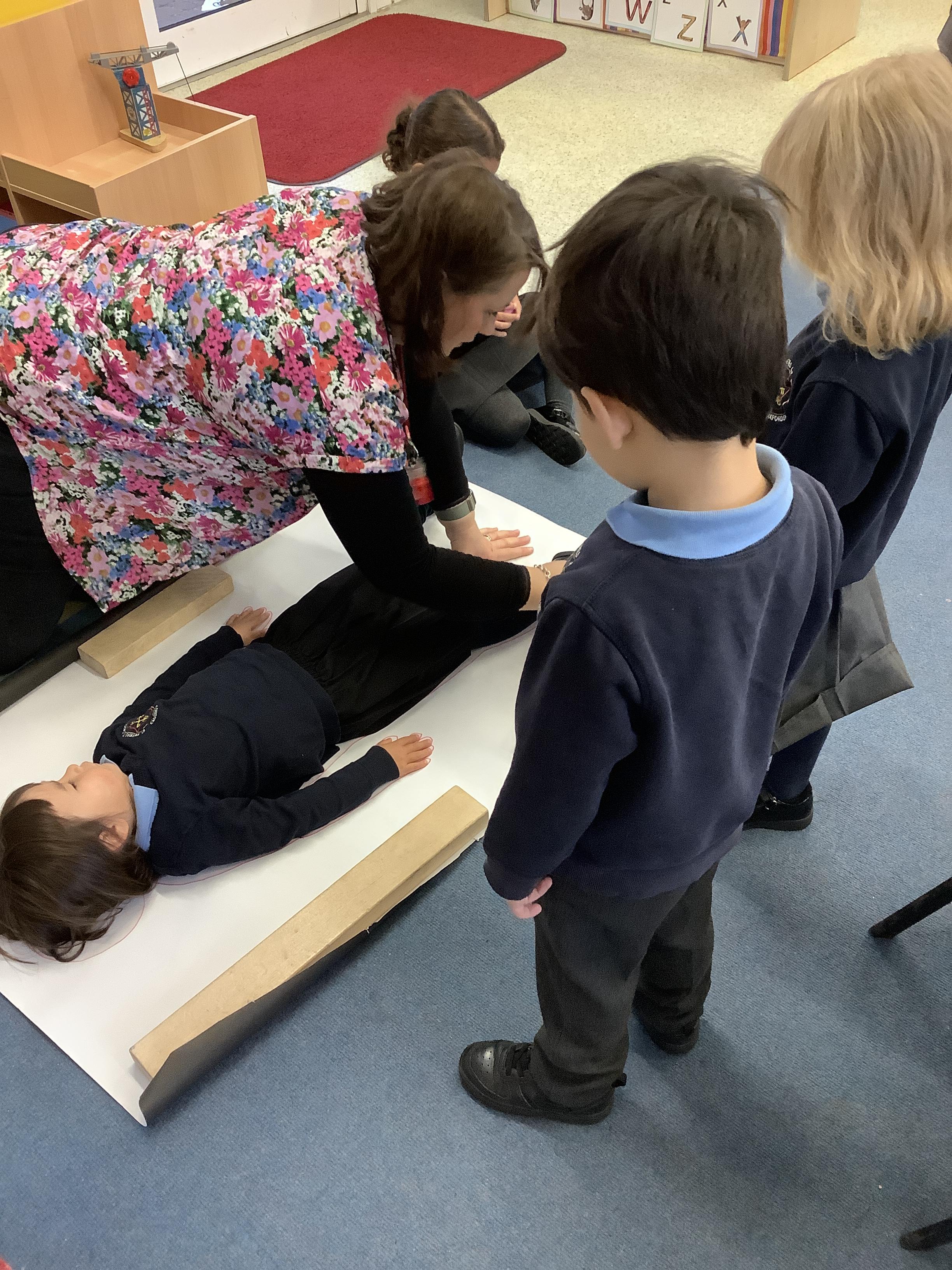 They continued by following and re-telling the story of ‘we’re going on a bear hunt.’ This gave them the opportunity to create a story map and follow a map to get to a place in the garden. It also offered lots of sensory play and experiences as they recreated the scenes of the story, like the thick oozy mud and swirling whirling snowstorm. Listening to Michael Rosen tell the story was lovely as he added lots of expression and effects.