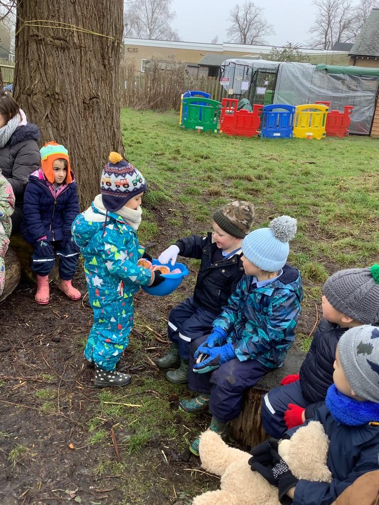 Apple Tree have looked at the value of kindness and celebrated this through making banana bread together. They all brought their favourite teddies to school and had a teddy bears’ picnic at Forest School where they shared the banana cake together – it was a very tasty treat!