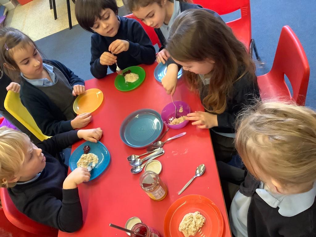 Apple Tree have been enjoying their brilliant bears topic this term, which began with the Story of Goldilocks and the three bears, sparking discussion around the value of honesty. They loved joining in with this well-known story and thought of some questions they would like to ask Goldilocks about her choices. Apple Tree were very lucky as they got their answers when Goldilocks visited Apple Tree one morning! They helped her write a letter to the three bears to apologise, tried porridge and made a tally chart of their favourite toppings as well as lots of re enacting the story in the three bears cottage role play area.