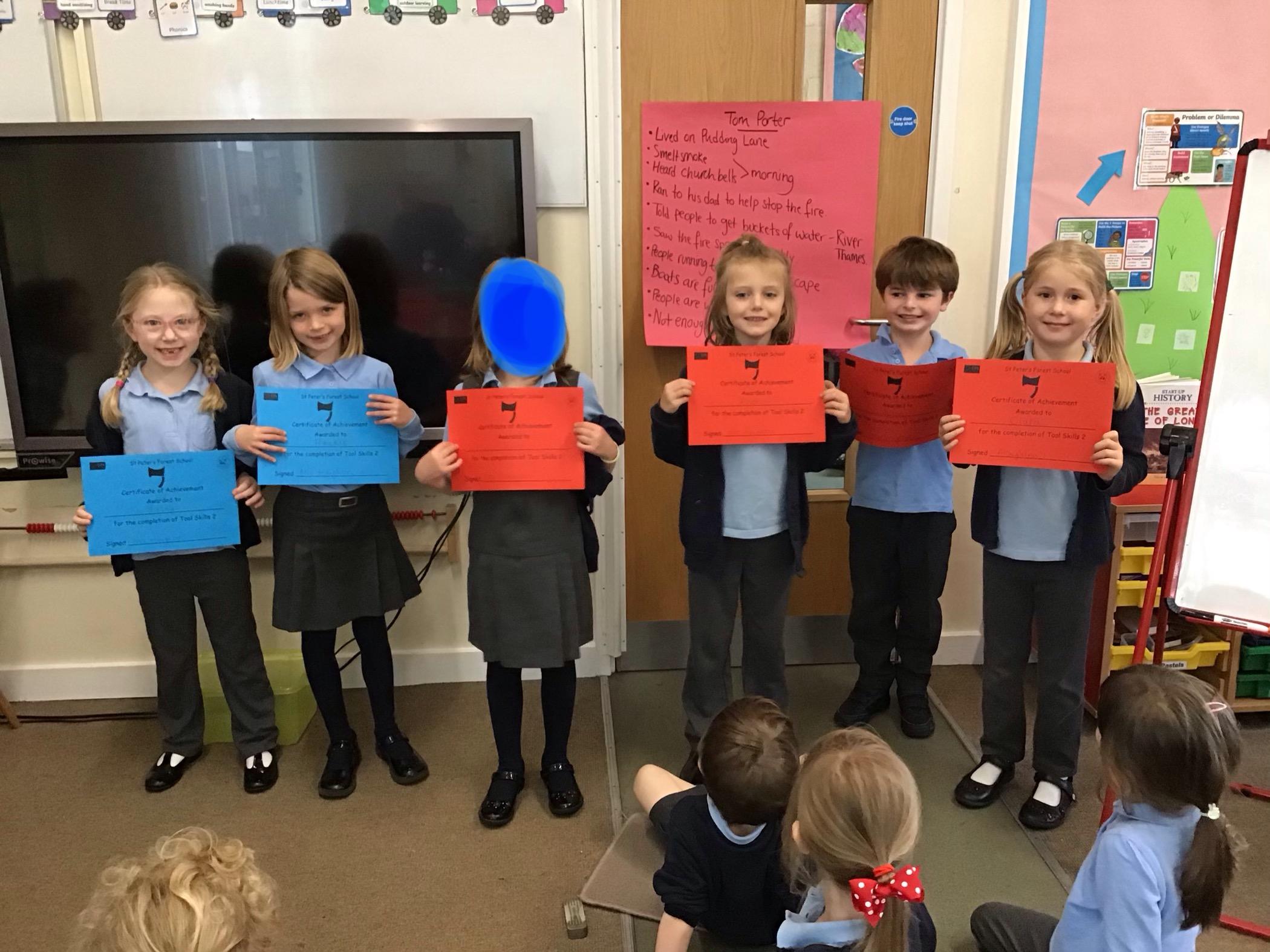 During our Forest School sessions the children progress through different skills in Tools, Rope, Fire, Dens and Nature. Once they have achieved all of the skills in Forest School Skills Passport 1 they can move onto Forest School Skills Passport 2. Once they have achieved the skills in Forest School Skills Passport 2 they receive their much anticipated Forest School badge. The children really enjoy working on these various skills and are really proud of their achievements.